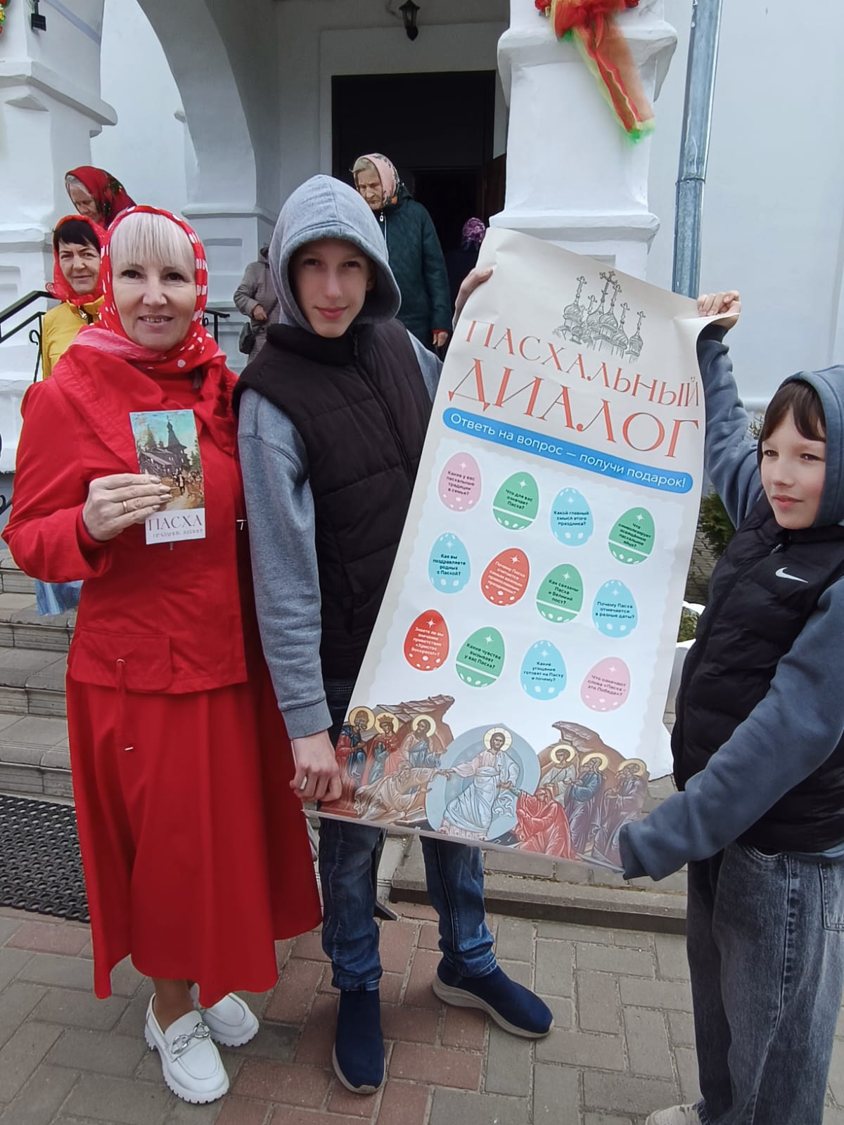 В Светлую Пасхальную седмицу на приходе храма в честь Благовещения Пресвятой Богородицы города Суража прошла акция “Пасхальный диалог”, которая стала ярким примером того, как люди разных профессий, возрастов, увлечений и взглядов объединяются Великим Праздником — Светлым Христовым Воскресением. “Инициаторами диалога” стали воспитанники и преподаватели воскресной школы, которые делились с прохожими, прихожанами храма не только неподдельными светлыми эмоциями, но и своими знаниями об истории и значении Праздника. Интересовались тем, какие у собеседников существуют традиции празднования Пасхи, обменивались рецептами блюд для праздничного стола, раздавали информационные буклеты и делились радостным приветствием “Христос Воскресе!”, слыша в ответ еще более радостное “Воистину Воскресе!”.