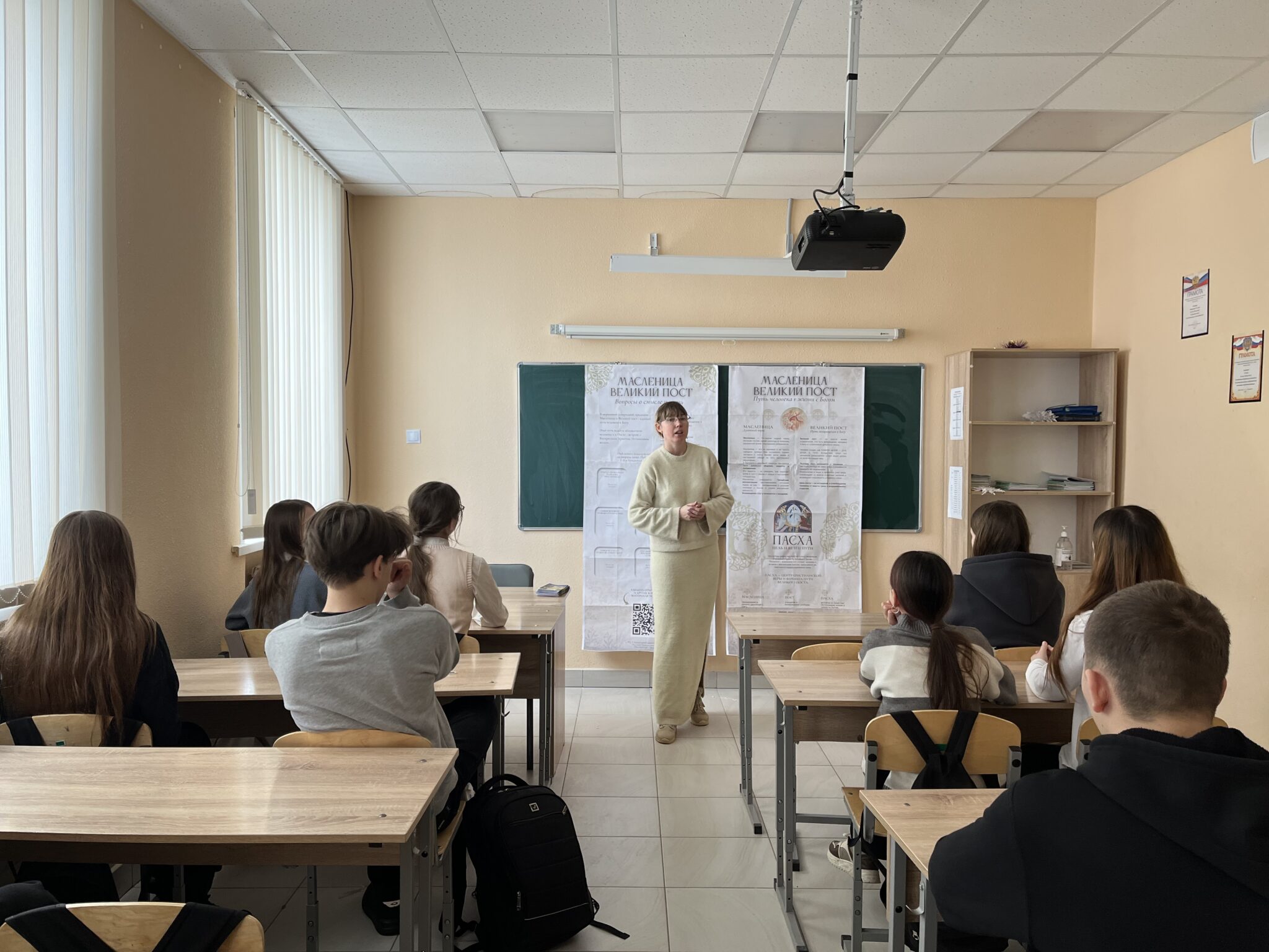 Просветительская встреча прошла в стенах МБОУ СОШ №2 г. Суража, где учащиеся смогли узнать о традициях и духовных истоках предстоящего Великого поста. Главной целью, которой стало напоминание о скором наступлении «духовной весны» — Великого поста. Участников мероприятия преподаватель Воскресной школы в честь Благовещения Пресвятой Богородицы г.Суража Морозова Е.В. познакомила с христианскими традициями этого периода — Сырной седмицей, подчеркнув, что неделя подготовки к Великому посту должна быть посвящена примирению с ближними и благотворению. Юноши и девушки активно принимали участие в интерактиве «Масленица. Великий пост».