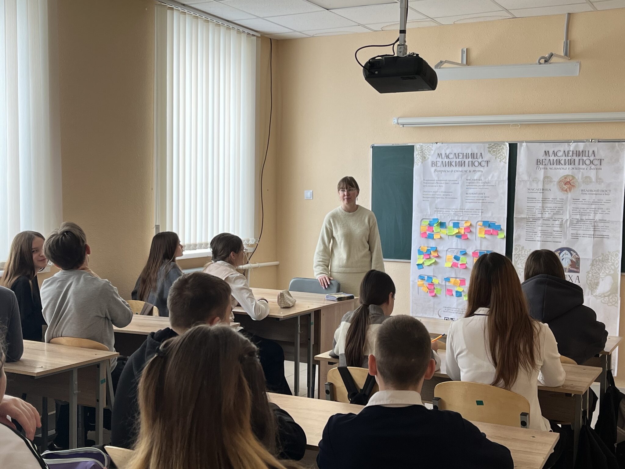Просветительская встреча прошла в стенах МБОУ СОШ №2 г. Суража, где учащиеся смогли узнать о традициях и духовных истоках предстоящего Великого поста. Главной целью, которой стало напоминание о скором наступлении «духовной весны» — Великого поста. Участников мероприятия преподаватель Воскресной школы в честь Благовещения Пресвятой Богородицы г.Суража Морозова Е.В. познакомила с христианскими традициями этого периода — Сырной седмицей, подчеркнув, что неделя подготовки к Великому посту должна быть посвящена примирению с ближними и благотворению. Юноши и девушки активно принимали участие в интерактиве «Масленица. Великий пост».