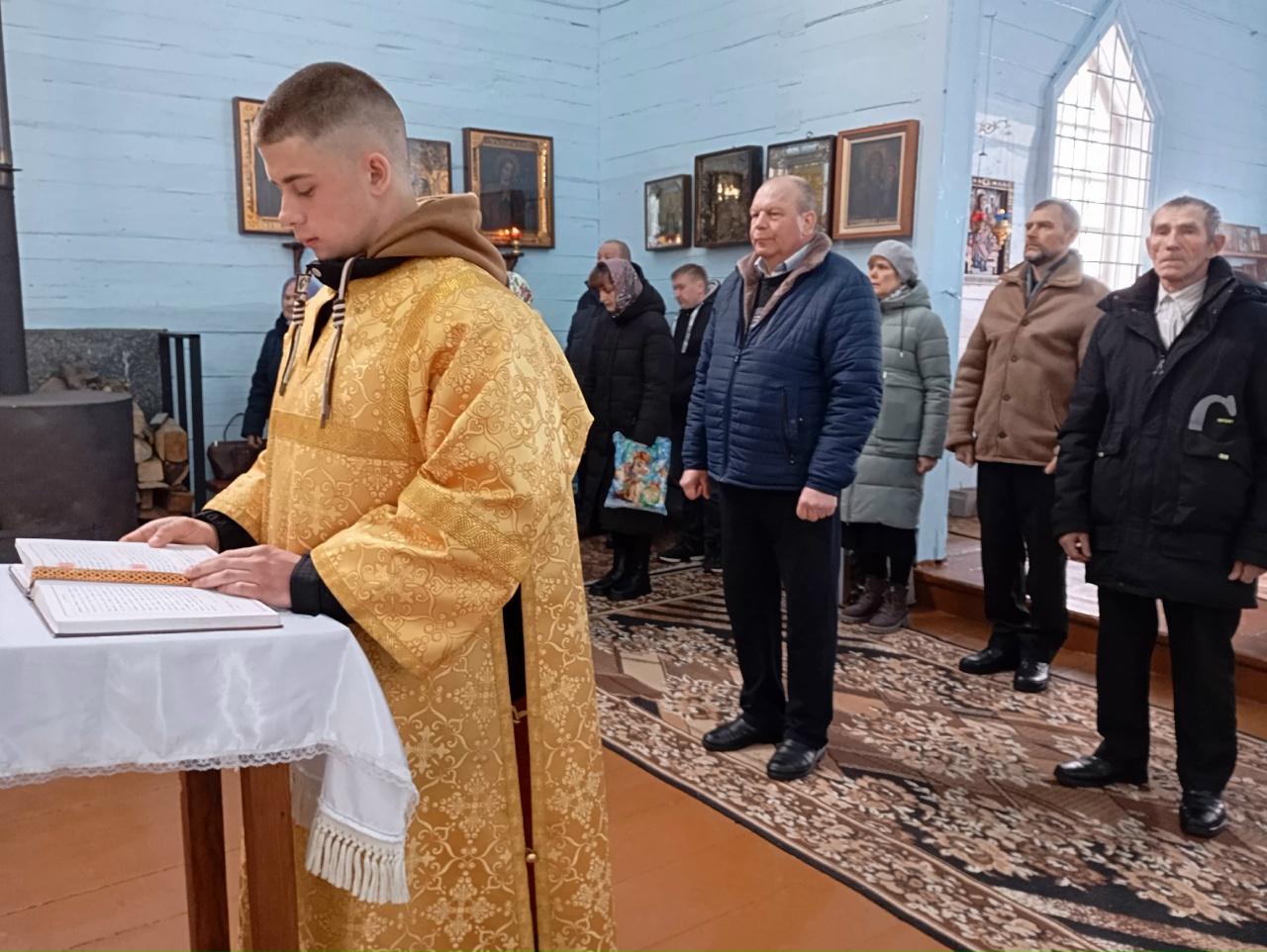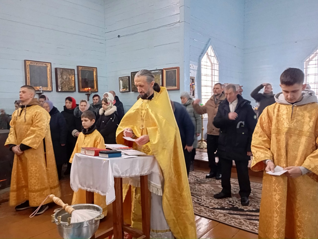 22 февраля, в Неделю сыропустную, воспоминание Адамова изгнания (Прощёное воскресенье), праздник обретения мощей святителя Тихона, Патриарха Московского и всея России (1992), настоятель храма во имя святителя Василия Великого с. Душатин иерей Александр Якушенко совершил Божественную литургию и молебен.